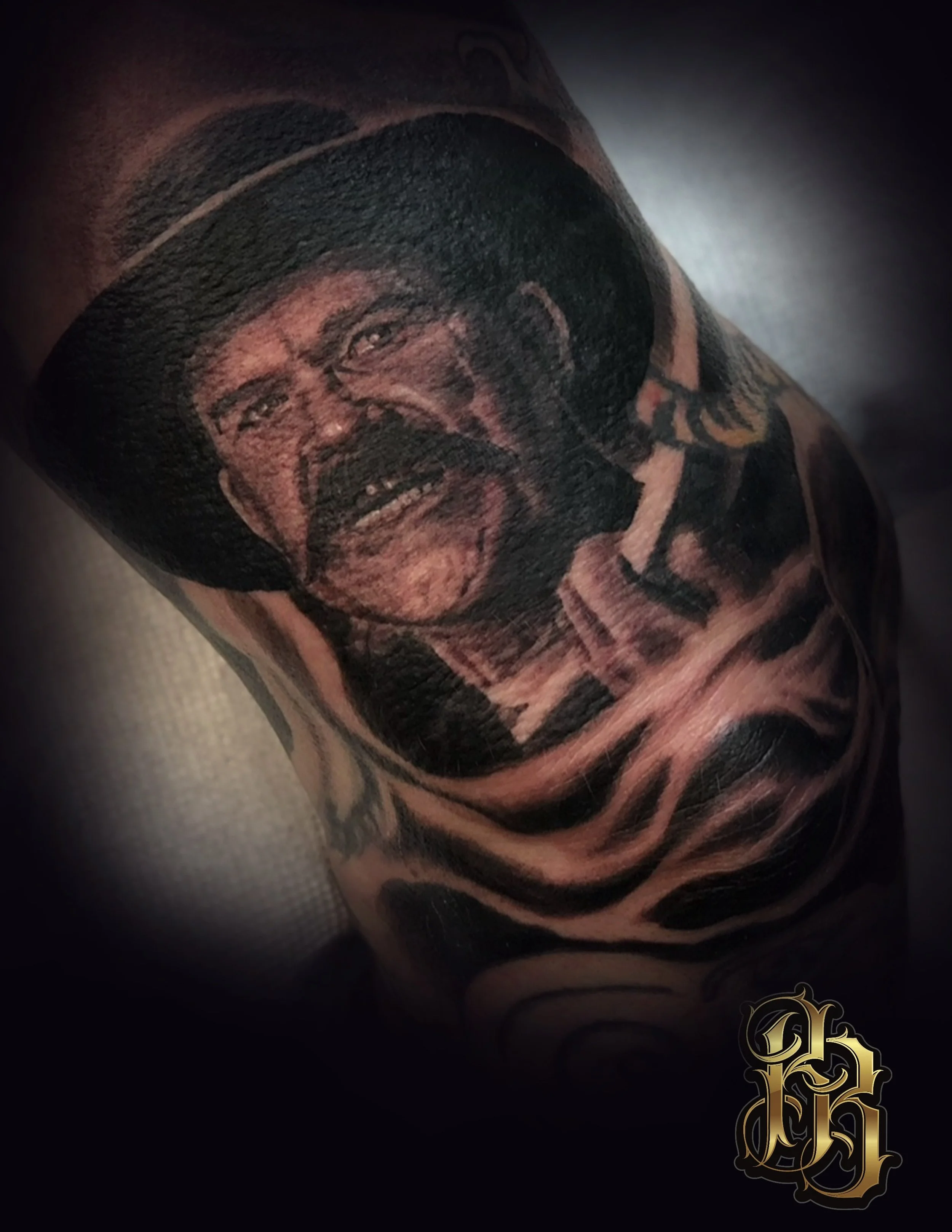 Blackbird is a California artist specializing in black and grey realism and clean, bold lettering. His tattoo career has been heavily shaped by attending tattoo conventions, where being surrounded by talented artists pushed him to keep leveling up.