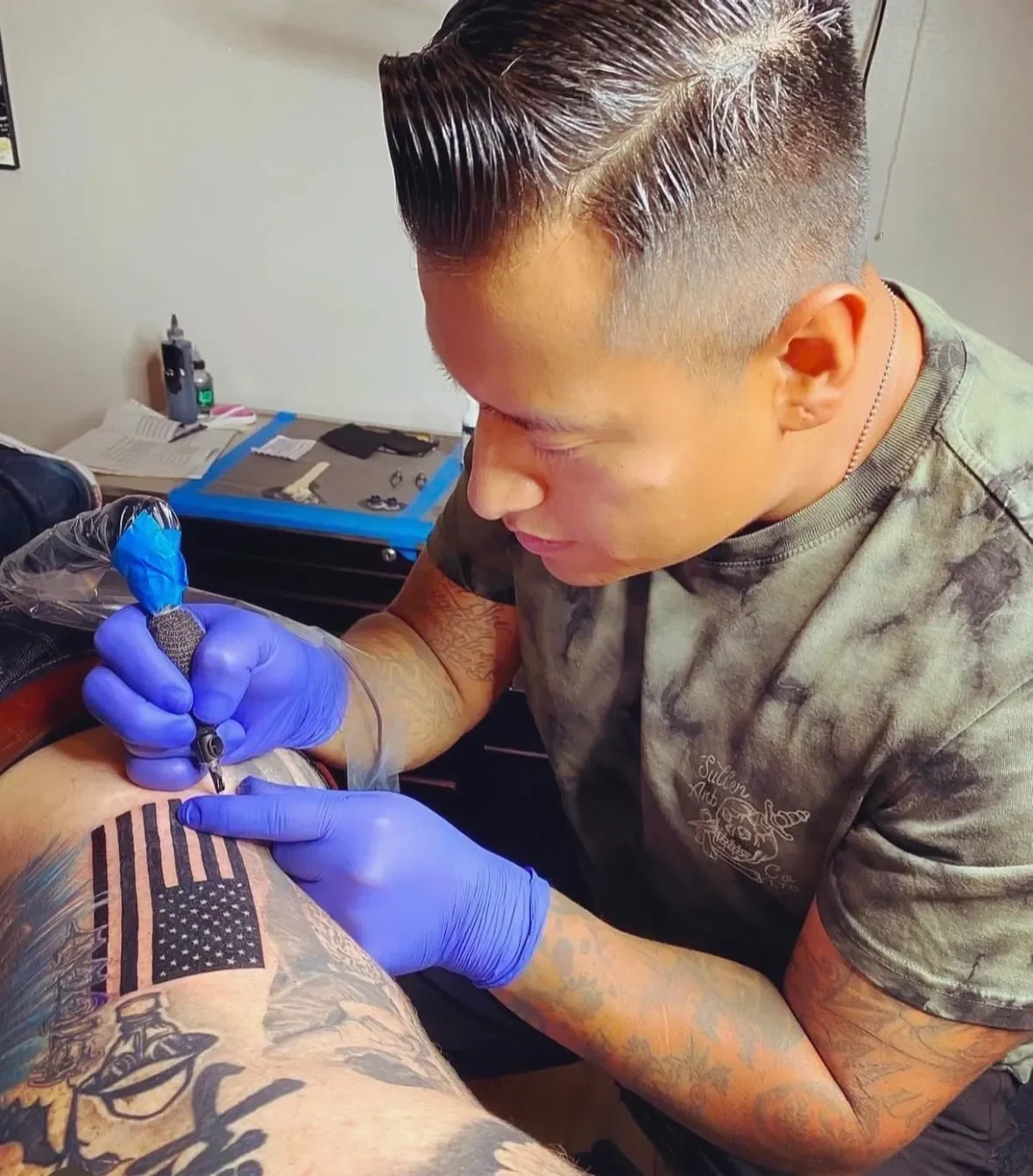American traditional is Felipe’s favorite style to tattoo, where bold lines, timeless imagery, and strong composition allow him to create powerful, classic pieces that stand the test of time.